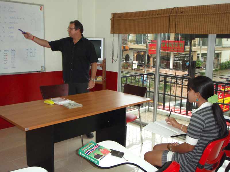 Seit der Einführung der erforderlichen Sprachprüfung für Ausländer, die in Deutschland leben möchten, ist weltweit ein regelrechter Boom für Sprachunterricht ausgebrochen. Jeder, der auch nur ein bisschen Deutsch kann, versucht sich nun als Deutschlehrer. So manche Firma hat mal eben ein hinteres Bürozimmer oder Lagerraum leergeräumt, ein paar Stühle und eine Tafel reingestellt, eine(n) Thai angeheuert die/der vor Jahren in Deutschland einen Sprachkurs besucht hat und ihr/ihm den Titel eines Lehrers erteilt. Aber auch so mancher Langzeit-Tourist gibt nun privaten Sprachunterricht, um seinen Urlaub finanzieren zu können.