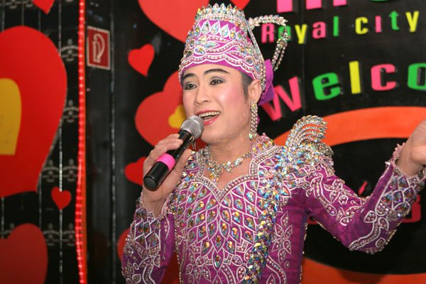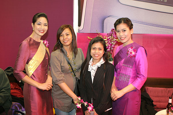 Und nun zu einem richtigen Highlight der Messe. Am 12.3. wurde IKH Prinzessin Ubol Ratana am Thai-Messestand erwartet. Nach ehrfurchtsvoller Begrüßung trat IKH den Rundgang um den Messestand an. Bei einigen Ausstellern nahm sie Platz, unterhielt sich kurz und erduldete das andauernde Blitzlichtgewitter. Anschließend ging es in die obere Lounge, wo das thailändische Fernsehen ein Interview aufzeichnete, das dem Chefredakteur eines Bangkokers Magazin gewährt wurde. Nach diesem Gespräch kam die Prinzessin nach unten. Karaoke stand auf dem Programm. Vor begeistertem Publikum hat die Prinzessin mehrere Lieder vorgetragen. Begleitet wurde sie von DJ John am Keyboard, Ott an der Gitarre, Nit am Bass und Dong am Schlagzeug. Gegen 19.00 Uhr war die exclusive Vorstellung zu Ende. Unter viel Beifall ihrer Landsleute verließ IKH die Messe.