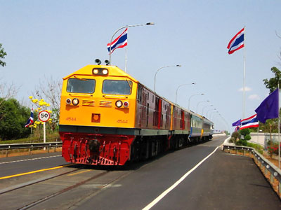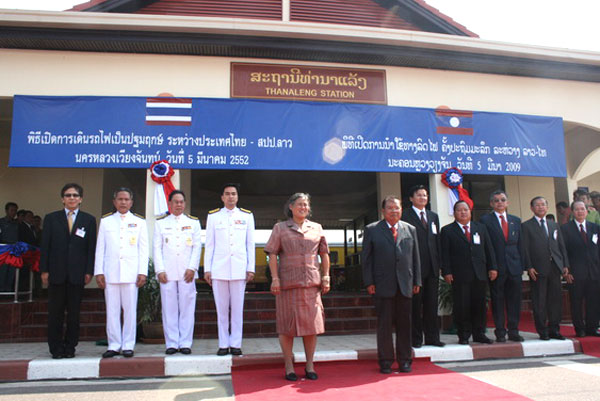Wie in der letzten Ausgabe angekündigt, fand nunmehr tatsächlich am 05.03.2009 endlich die Eröffnung der Strecke Nong Khai (Thailand) - Tha Nalaeng (Laos) in Anwesenheit von Prinzessin Maha Chakri Sirindhorn statt. Mit dem Läuten der Bahnhofsglocke auf dem Bahnsteig von Nong Khai um 09:19 war die Strecke eröffnet, und um 09:39 setzte sich der königliche Hofzug von Nong Khai über die 1. Thai-Lao Freundschaftsbrücke nach Tha Nalaeng in Bewegung, wo ebenfalls ein Festakt stattfand. Natürlich war auch der thailändische Ministerpräsident bei der Einweihung dabei, er war zu diesem Zweck am Morgen des 05.03. um 05:30 von der Don Muang Airforce Base zum Wing 23 (Udon Thani Airforce Base) geflogen.
