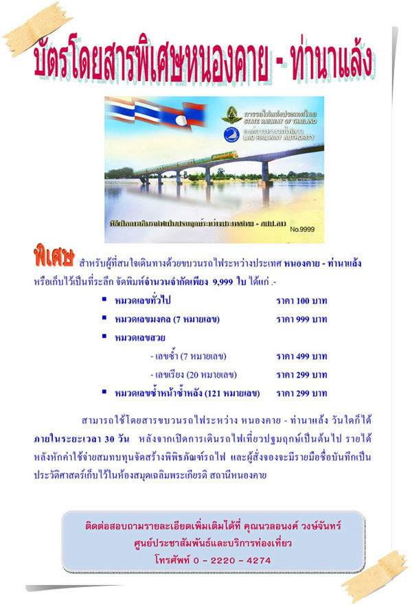 Nachdem es beinahe zu ernsthaften Verstimmungen zwischen Laos und Thailand wegen des nicht stattfindenden Verkehrs gekommen wäre, konnten sich die beiden Eisenbahnverwaltungen (LRA und SRT) endlich auf ein MOU (Memorandum of understanding=Einverständniserklärung) am 08.03. einigen. Ab dem 09.03. werden also die im letzten Heft genannten Züge verkehren.