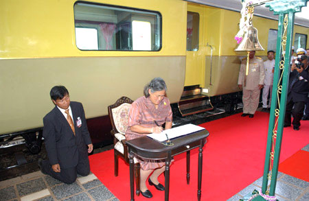 Der königliche Hofzug war zu diesem Zweck bereits seit dem 03.03. in Udon Thani (km 568.84) abgestellt worden. Aus Sicherheitsgründen mussten am 04. und 05.03.09 alle Planzüge bereits in Kumphawapi (km 532.50) wenden. Ebenfalls aus Sicherheitsgründen durften während des Festaktes keine Digitalkameras von Hobbyfotografen benutzt werden (auch mit Digitalkameras könnte man ja Bomben zünden, nicht nur mit Mobiltelefonen!).