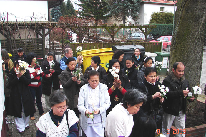 Eine Makha-Bucha-Zeremonie im Wat Buddhavihara in Berlin-Wittenau am 8. Februar 2009. Sie diente der Erinnerung an den Tag der Entstehung des Buddhismus.