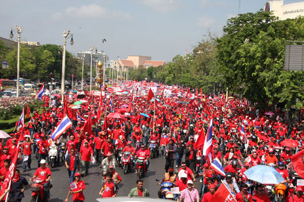 Ja, diese beiden berühmten Worte, die zumeist von den Linken in allen Ländern gebraucht wurden und immer noch gebraucht werden, beschreiben die momentane politische Situation in Thailand wohl ganz treffend. Waren es erst die "Gelben" von der PAD, die gegen die Regierung des damaligen Ministerpräsidenten Somchai Wongsawat mit allen Mitteln protestierten, die unselige Flughafenblockade der beiden wichtigsten Flughäfen Thailands durchführten, die Thailand wirtschaftlich und rufmäßig schwer geschadet hat, aber letztlich, zwar mit Hilfe des Obersten Verfassungsgerichtes Thailands, zur Ablösung der bedrängten Regierung führte und eine neue Regierung unter dem jetzigen Ministerpräsidenten Abhisit Vejjajiva brachte, so sind es nunmehr die "Roten" der DAAD, die jetzt die Proteste anführen. Wieder sollen die Massen mobilisiert werden, um eine angeblich unbeliebte Regierung zu stürzen, nur sind diesmal die Seiten vertauscht.
