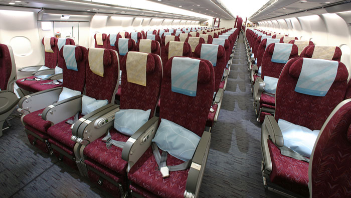 An Bord gibt es in der Eco einen Sitzabstand von ca. 79-86 cm und Breite 42-45 cm je nach Flugzeugtyp, Bildschirm mit Video on Demand, Kopfhörer, deutschsprachige Filmauswahl, bis Bangkok 4 Mahlzeiten, Speise- und Getränkekarte mit großer Getränke- und Menüauswahl, natürlich alles kostenlos. Ein Reisetäschchen mit Socken, Zahnbürste, Ohrstöpsel, Schuhanzieher, Augenklappe etc. Kostenfrei reservieren wir Ihnen schon bei der Buchung ihren Wunschplatz. Für Reisende in der Economy Class ist beim Abflug am Abflugschalter gegen einen geringen Aufpreis von z.Zt. ca. 15 Euro, der Zutritt zur Oryx Lounge am Flughafen Doha buchbar.