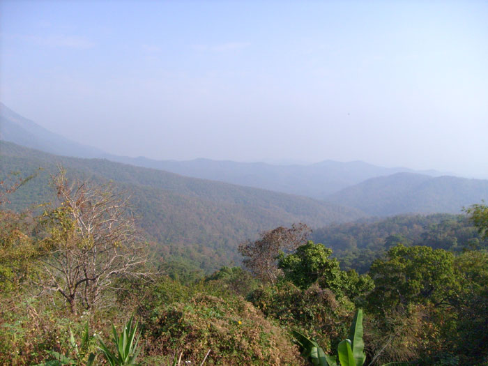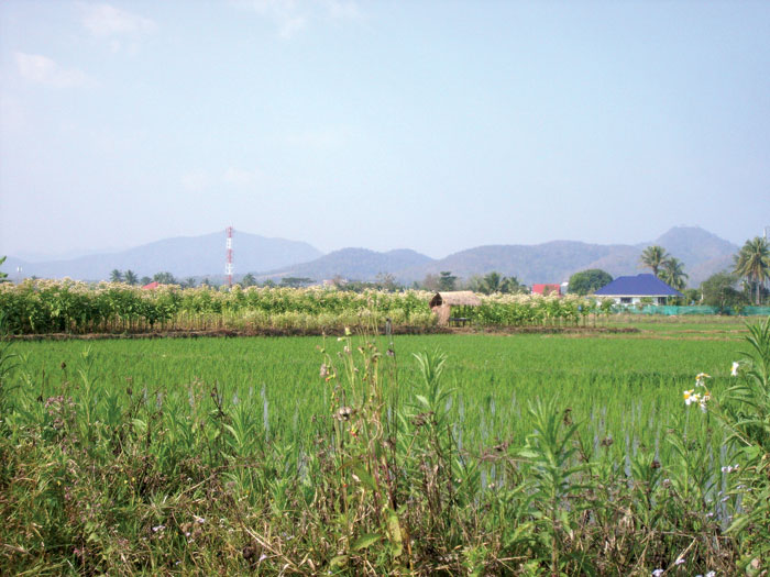 07.00 Uhr morgens in Phayao, die Sonne kroch über der Bergkette hervor. Wir setzten uns in Bewegung. Richtung Chiang Mai, auf der Strasse 120 bis Ban Mae Khachan. Zunächst ging es steil bergauf, eine gut ausgebaute Straße. Anfangs noch schmal wurde sie immer breiter. Kurve um Kurve folgte, teilweise dramatisch scharf und eng. Doch es ging recht gut voran. Die Aussicht auf die umliegende Landschaft, mit jeder Serpentine und jedem Höhenmeter besser. Endlich erreichten wir die Passhöhe, und ich hielt an, denn auch ich wollte mal einen Blick auf dieses Panorama werfen - einfach wunderbar. Alle waren begeistert von dem Ausblick. Nach einer kurzen Pause, steil und kurvig durch die Berge, langsam abwärts. Im Tal angekommen bot sich ebenfalls ein tolles Bild, denn dort wurde allerlei Gemüse angebaut und natürlich Reis, hier Klebereis.